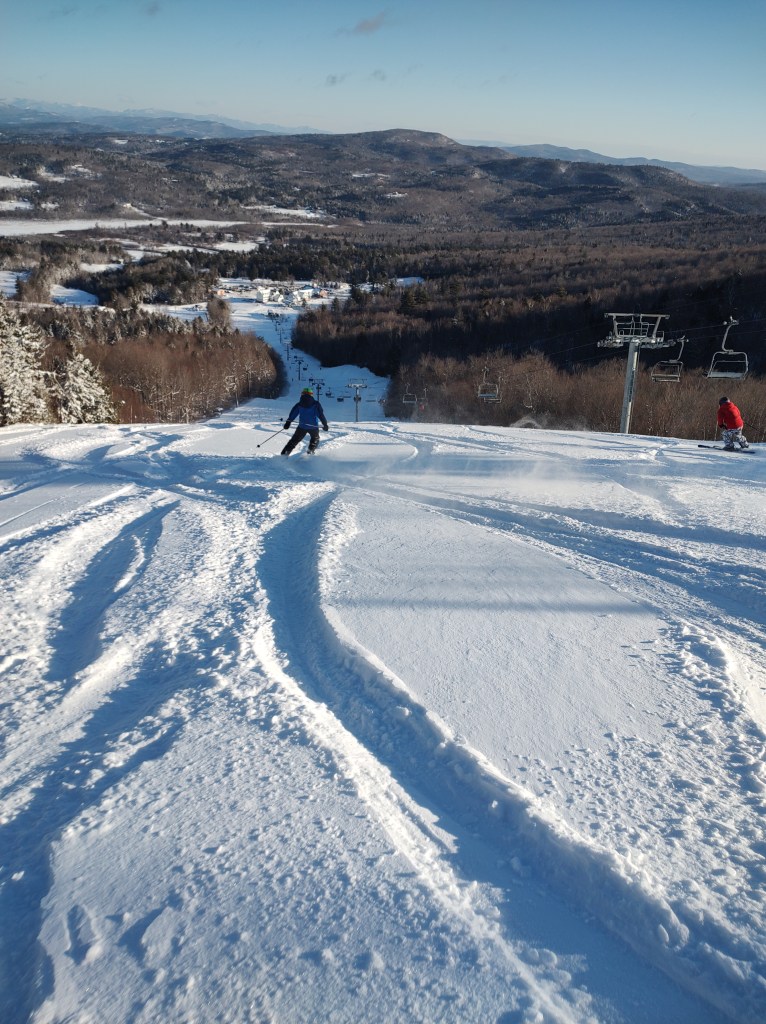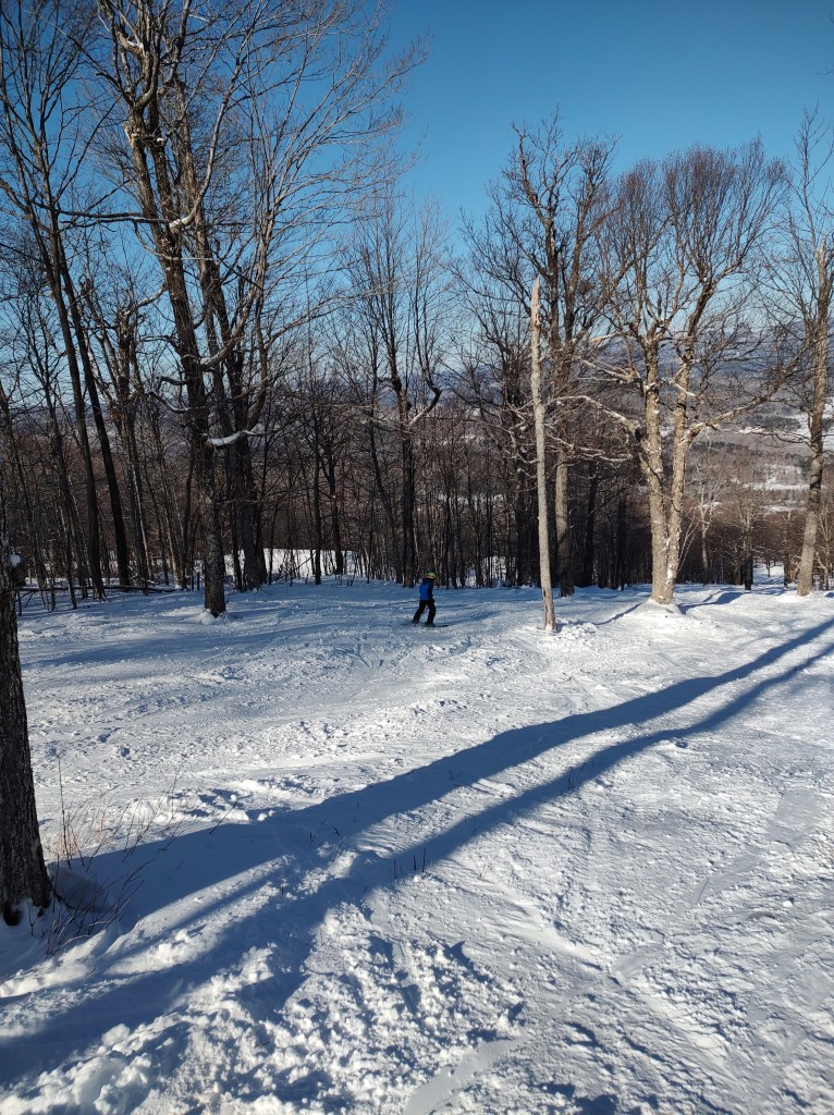 As we spent the day enjoying blue bird skies and great conditions, we talked about the subtle difference between me riding with him and him skiing with me; me adjusting to his wants or him pushing to be with me. We talked about how physical activity can be restful, how the people you are with are important, and it’s more than the sport, it’s the state of mind for the day.